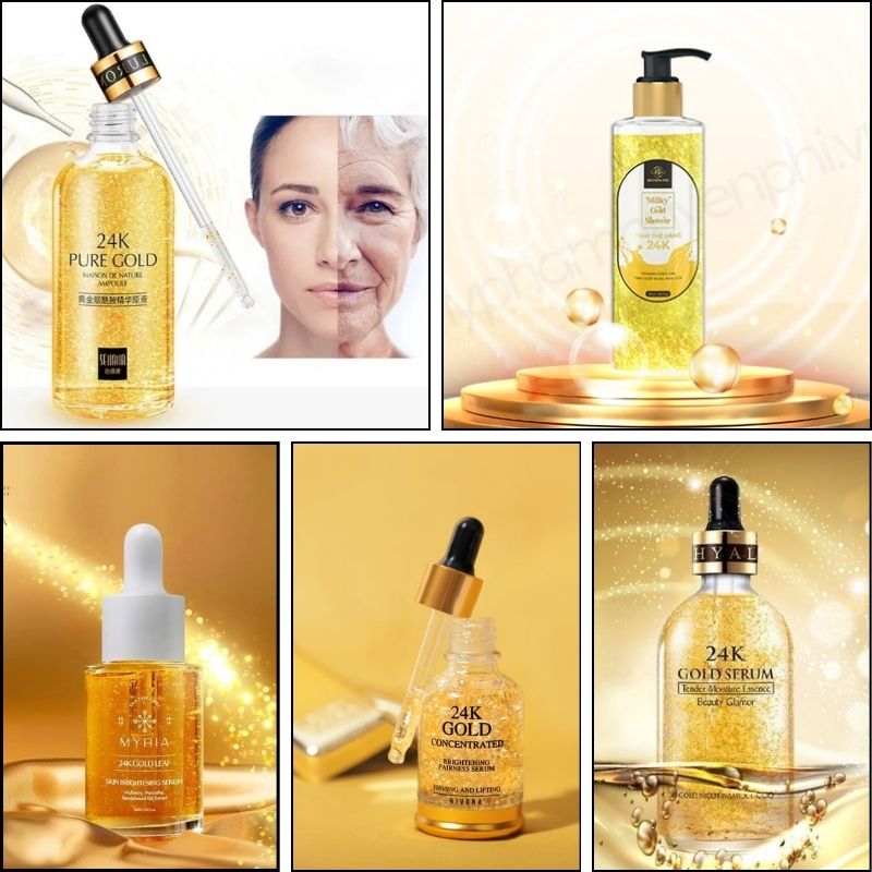 Đây sẽ là sản phẩm dành cho phân khúc khách hàng cao cấp mà các bạn muốn hướng tới. Với tinh chất vàng 10 nguyên chất 100% nó giúp làm chậm sự suy giảm collagen, tăng độ đàn hồi của da, làm sáng da, kích thích các tế bào làm cho da săn chắc, cải thiện lưu thông máu và ngăn ngừa lão hóa sớm, nếp nhăn, sạm da. Serum chính là ưu tiên hàng đầu khi chọn mua mỹ phẩm của nhiều người bởi vì nó là sản phẩm cô đặc tinh chất bên trong ở liều cao nhất. Chúng thường có dạng tinh chất đậm đặc với hoạt chất sinh học cao. Tính thẩm thấu và tác động của nó tới các vùng ảnh hưởng là điều kiện khiến cho công dụng của sản phẩm được phát huy ở mức tối đa. Nhờ có khả năng này mà serum có thể tác động vào trong tế bào nang tóc và da đầu kích thích mọc tóc nhanh so với các loại tinh dầu dưỡng tóc khác.