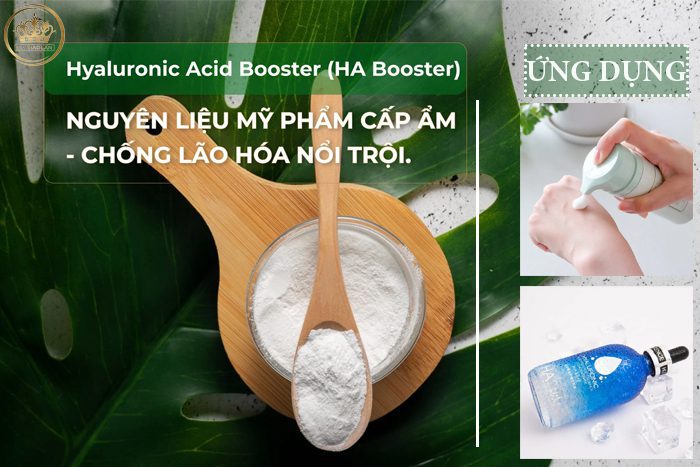 - Công dụng của HA Booster trong các sản phẩm gia công mỹ phẩm: thành phần này có khả năng dưỡng ẩm tuyệt vời, bên cạnh đó hoạt chất này còn có khả năng chống lão hóa hiệu quả cho làn da